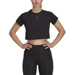 ADIDAS Essentials AEROREADY Train 3 Bar Logo Crop Maglietta Donna – Nero