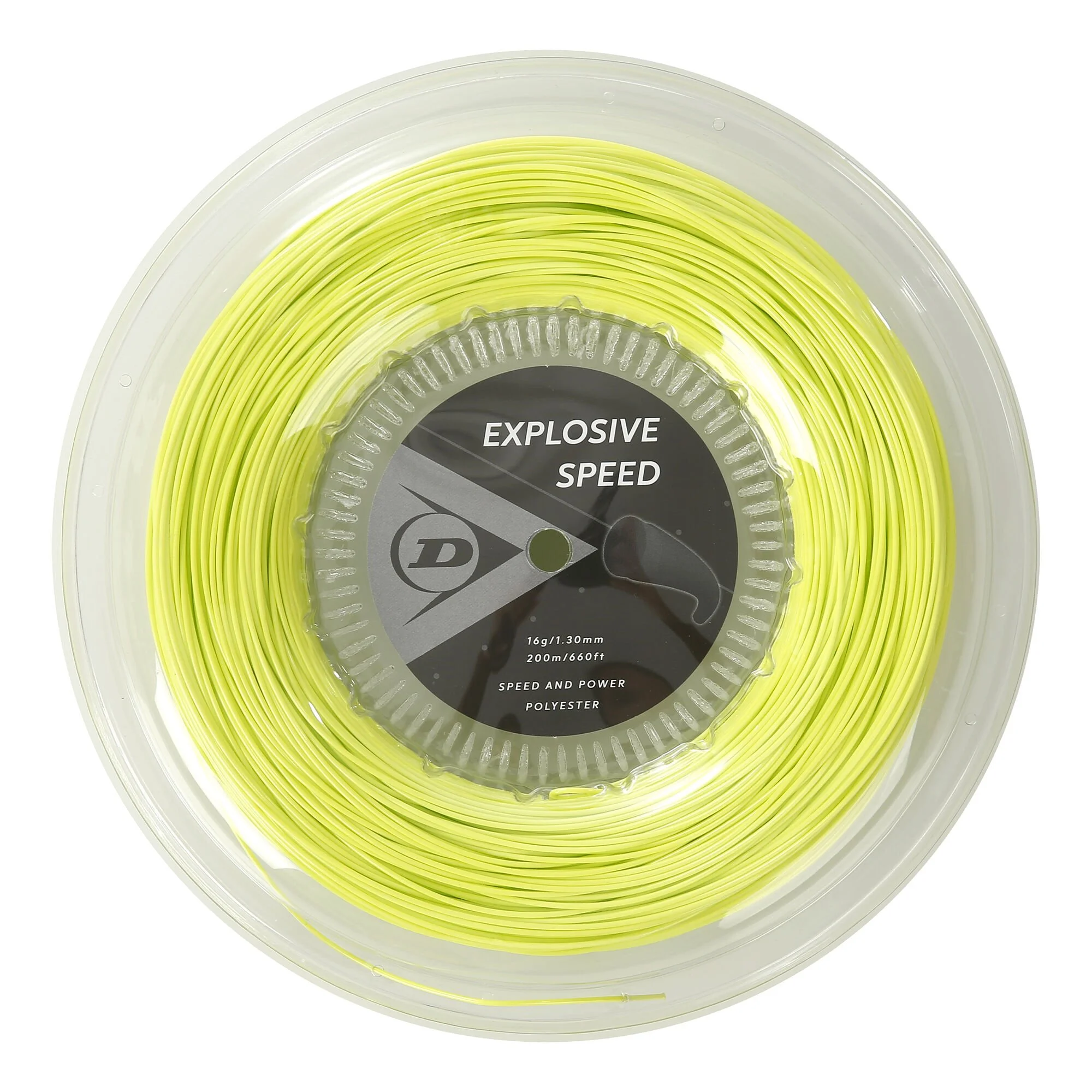 Corda in poliestere premium che offre la massima velocità e potenza. Monofilamento in poliestere premium per un alto livello di velocità. Il profilo esterno arrotondato aumenta la velocità e la potenza.
