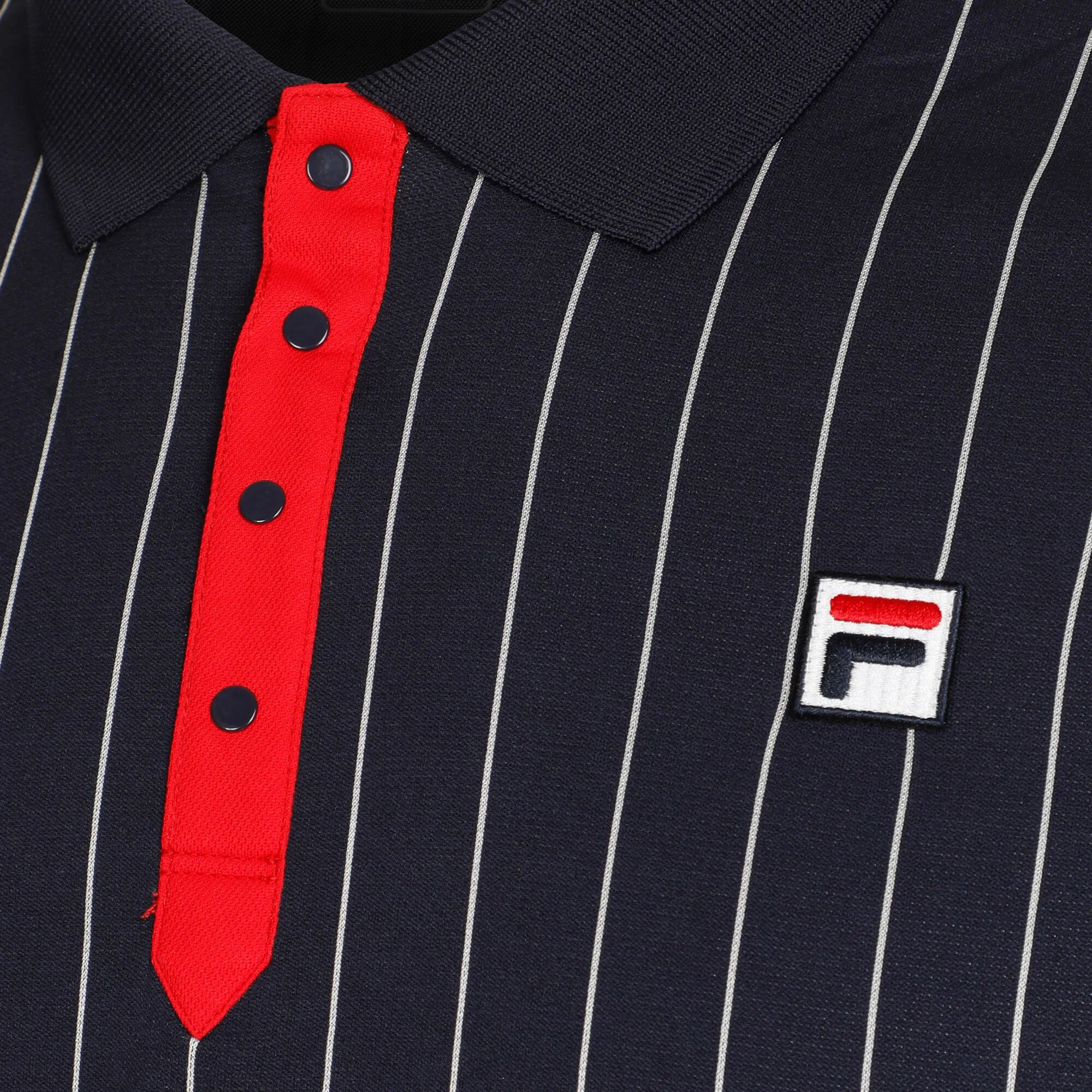 Questa polo completa la formidabile collezione da tennis che Fila propone ormai da qualche stagione. Indossatela sui campi e sentitevi a vostro agio nei movimenti. Essa è composta da un colletto a bottoni contrastato, da righe verticali su tutto il corpo e dal logo Fila sulla parte sinistra del petto.