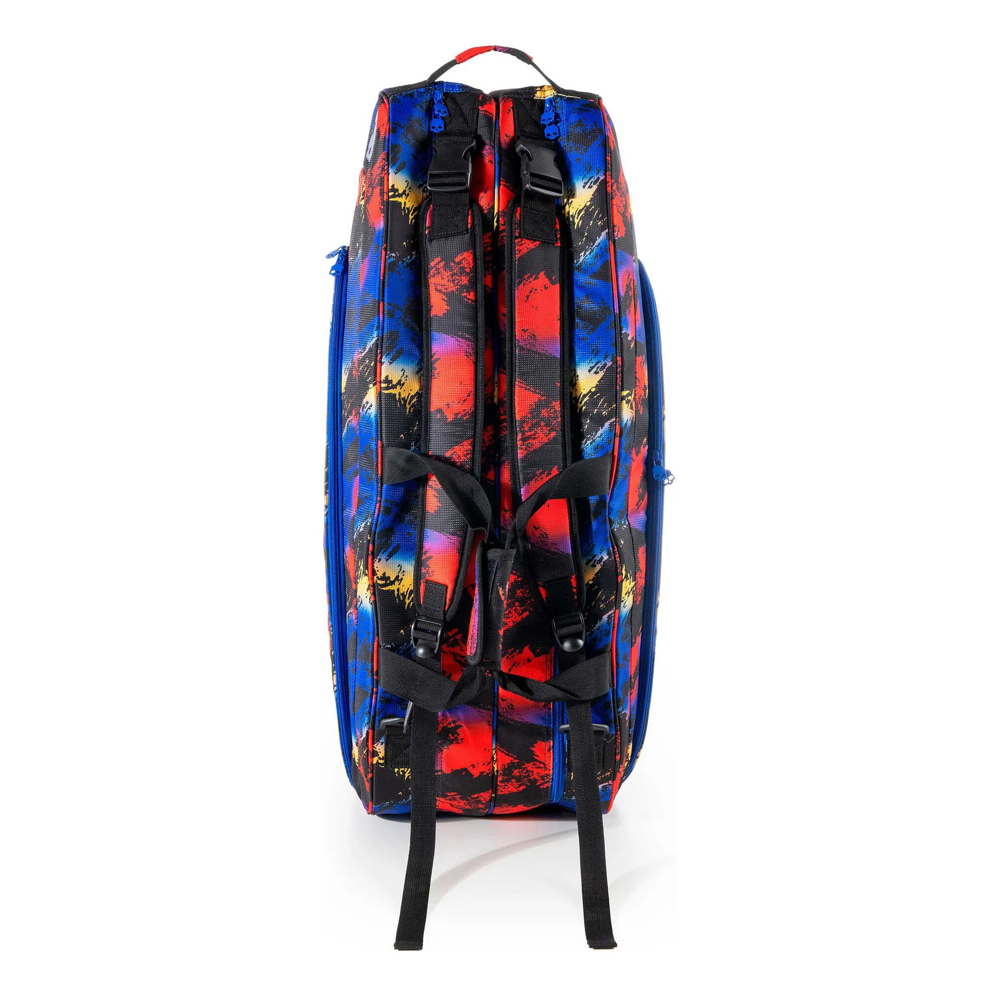 Questa borsa da tennis da 9 racchette vi permetterà di avere sempre a disposizione tutto l’equipaggiamento necessario per le vostre giornate in campo. Dispone di 3 ampi scomparti, di cui uno isotermico per proteggere le corde della racchetta, una tasca rigida con zip interna per proteggere smartphone e accessori fragili e una tasca con accesso alla sacca in nylon ventilato per indumenti e accessori bagnati. Dispone inoltre di ampie sezioni di tessuto riflettente con stampe per una perfetta visibilità notturna. Manico e spallacci imbottiti per trasportare comodamente la borsa.